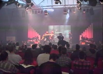 Kledingshow. Let op de Diversion's links en rechts van het podium...